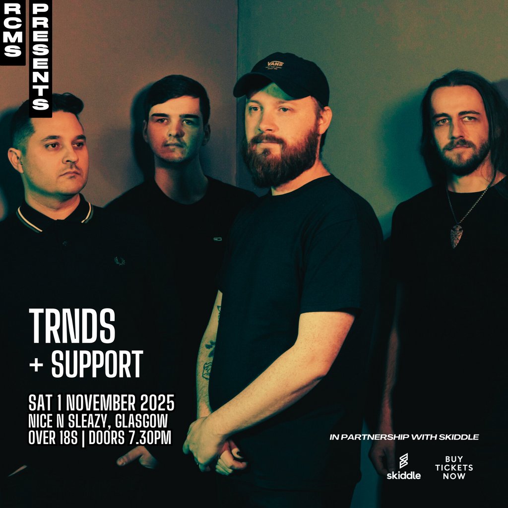 RCMS presents....... TRNDS + support live at Glasgow's Nice N Sleazy. Doors open at 7.30pm. Over 18s welcome